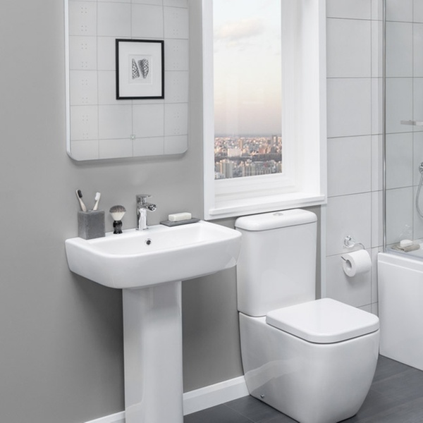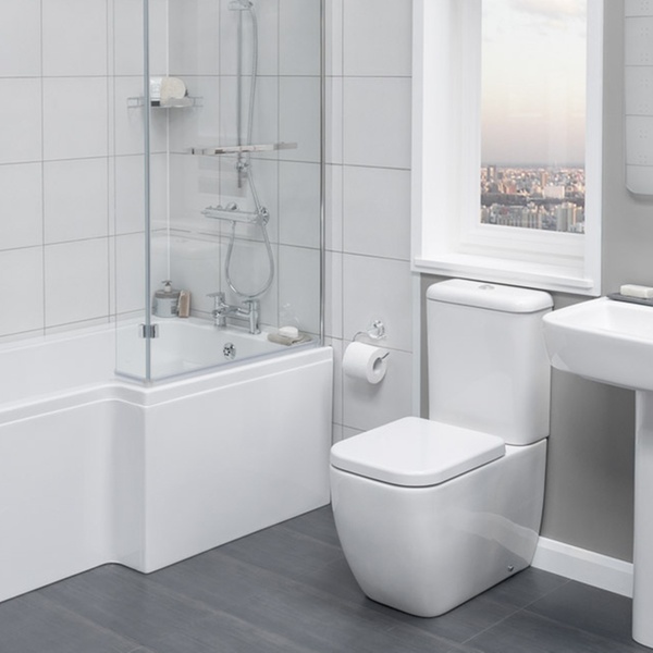 Bring a contemporary touch to a bathroom with this l shape shower bath, basin and a toilet; comes with a 10 year ‘Fit and Forget’ guarantee