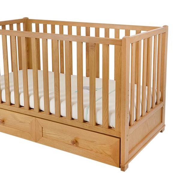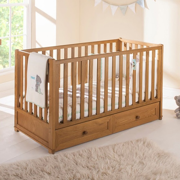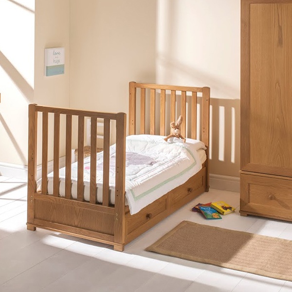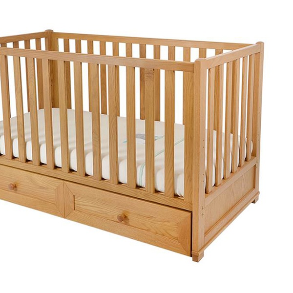 Crafted from oak with hardboard and oak veneers, this stylish cotbed and dresser will suit both modern and traditional nurseries
