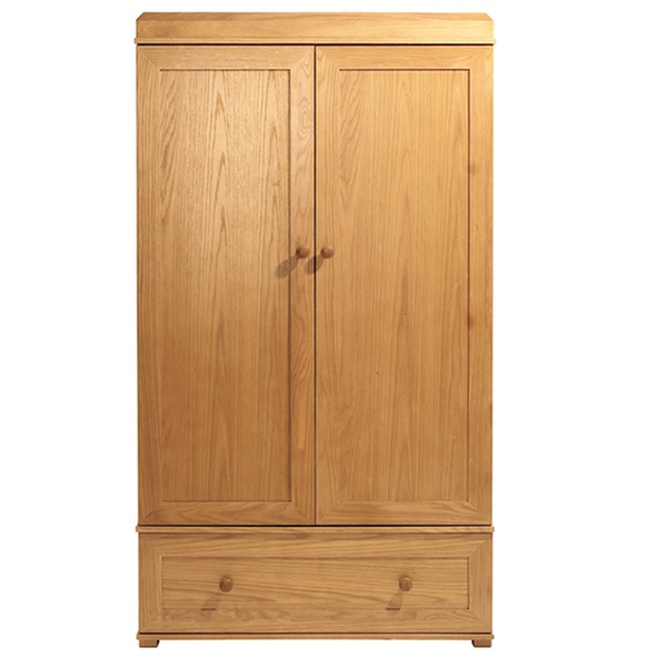 - Sturdy oak double wardrobe with panelled doors & turned handles