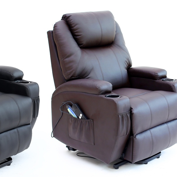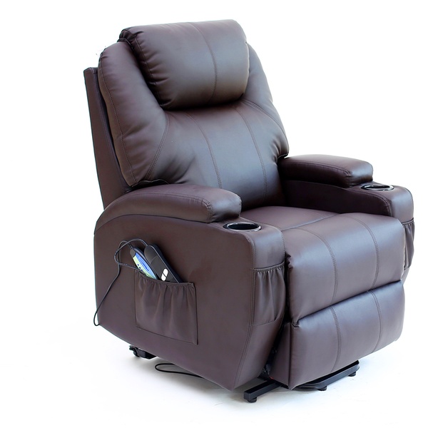 The rise and recline function is fully automatic and operated using the handy remote. Combine this with foam arms and pillow back support enables you to really sink into the recliner. The supportive seating gives comfort and support. This chair offers soft padding, lumbar support and full chaise seating. Other features include adjustable headrest, heated seat, 8 point massage, drink holders, front and side storage pockets.