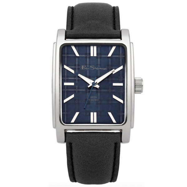 Ben Sherman - Black Strap - Rectangular Case - Blue Dial With Square Pattern (BS034)