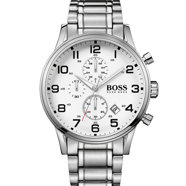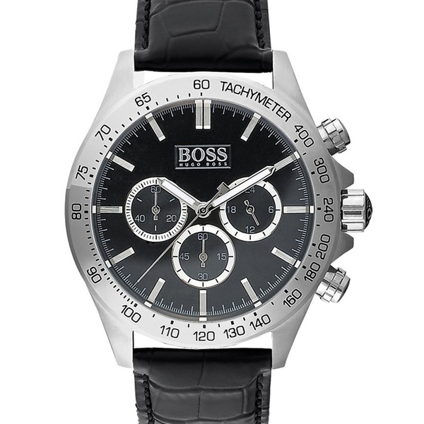 £179 for Hugo Boss 1513182 black classic aeroliner chronograph watch with silver metal bracelet (50% off)