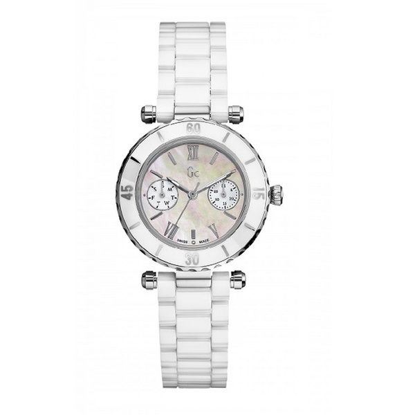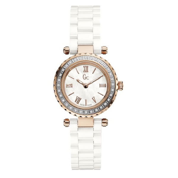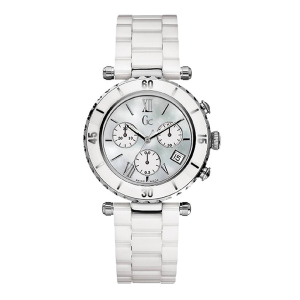 - Ceramic watch with mother-of-pearl dial and white ceramic strap
