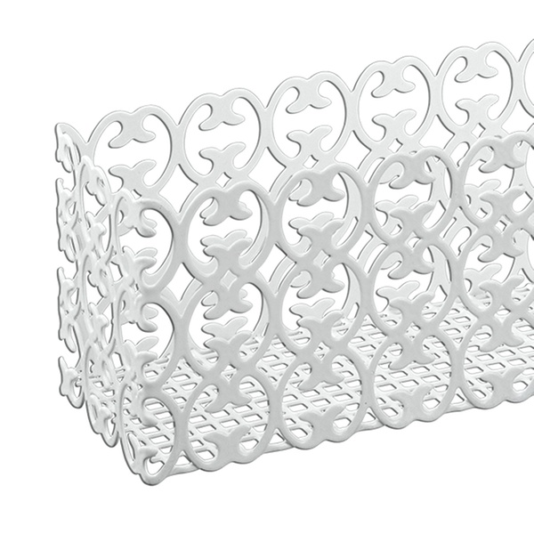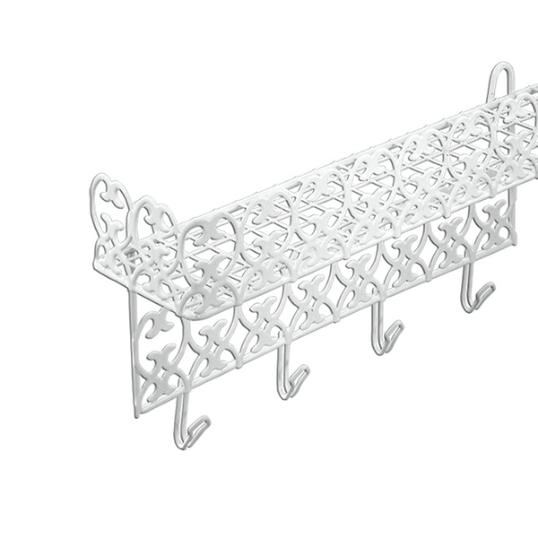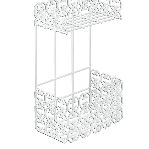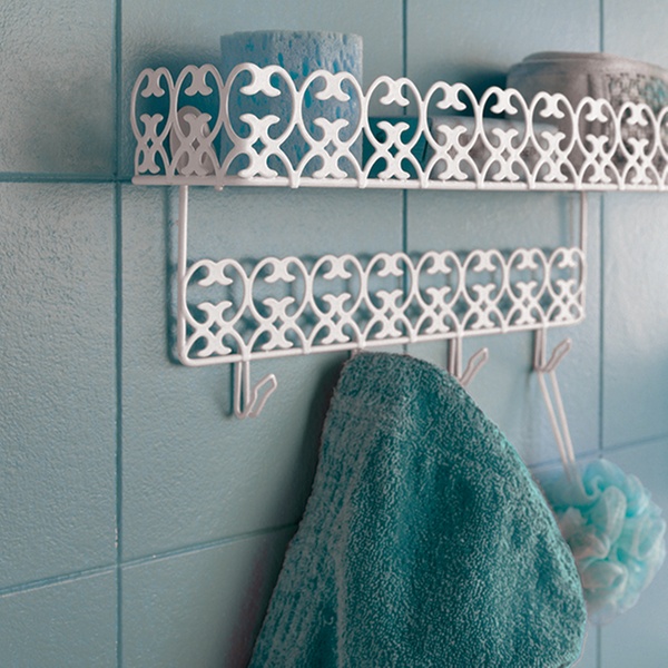 Bathroom storage solutions designed with traditional ornate decoration made from white epoxy-coated steel