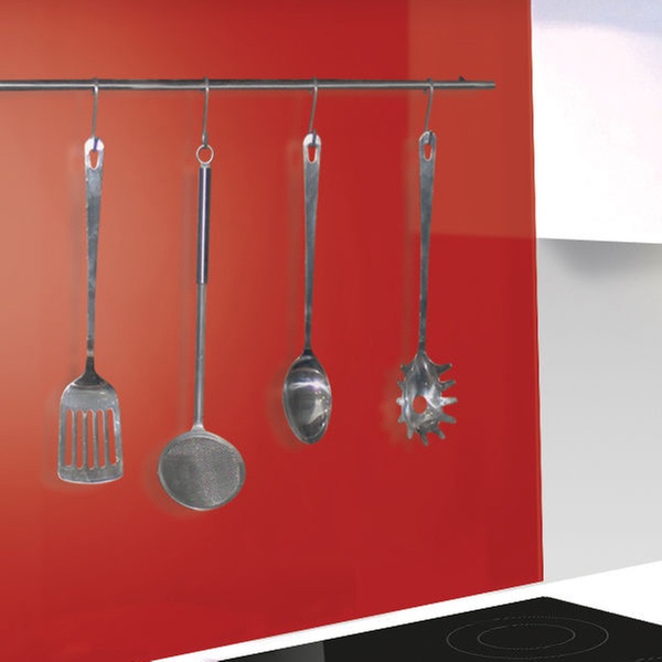 Ideal for any kitchen, this splashback with utensil rail is ideal to be fixed on any non-porous dust and grease free surface above the stove
