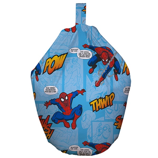This comfortable bean bag is 100% cotton and features an all-over Spiderman-themed print