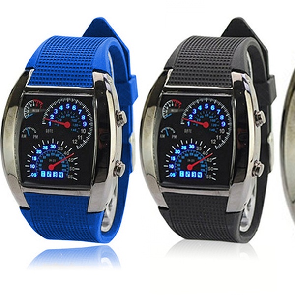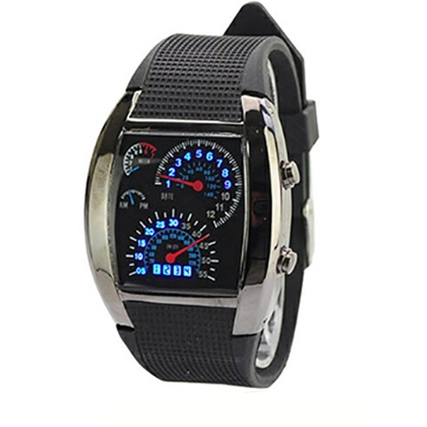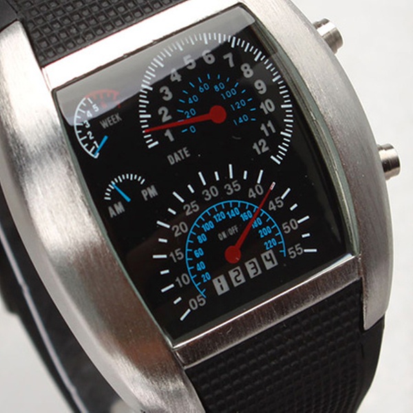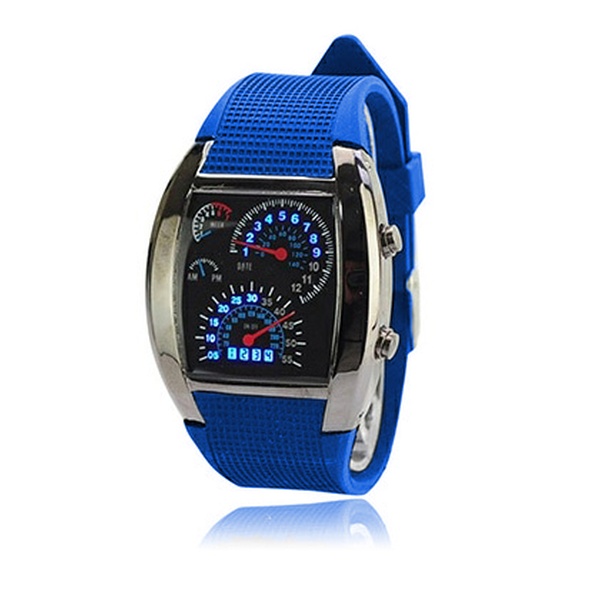 Today’s Groupon offers a men’s LED speedometer light aviation pilot binary digital wrist watch in blue, red, white or black for £5.99.