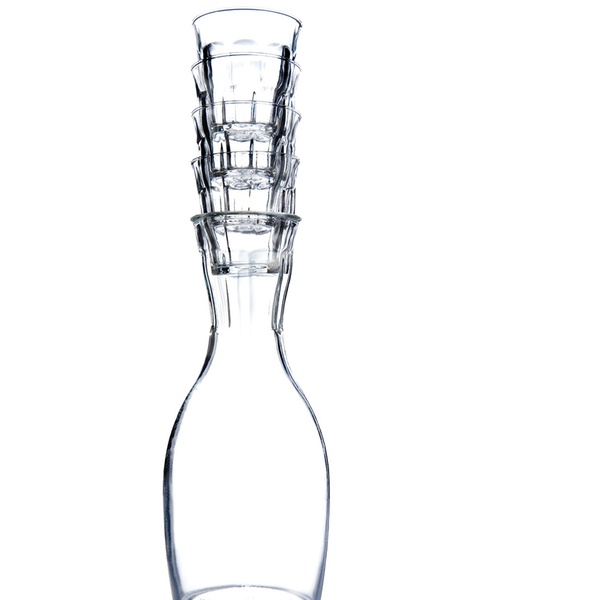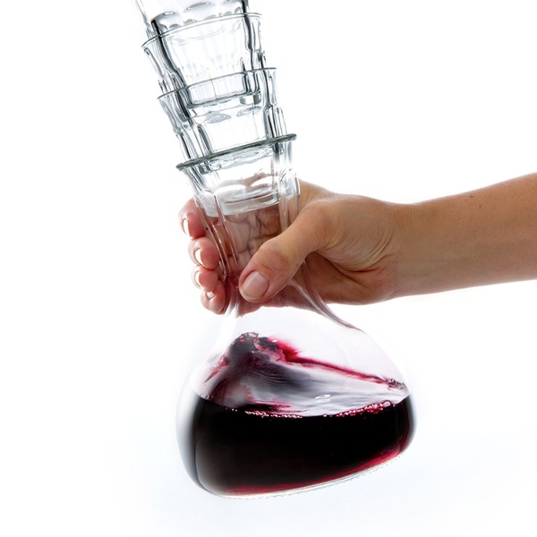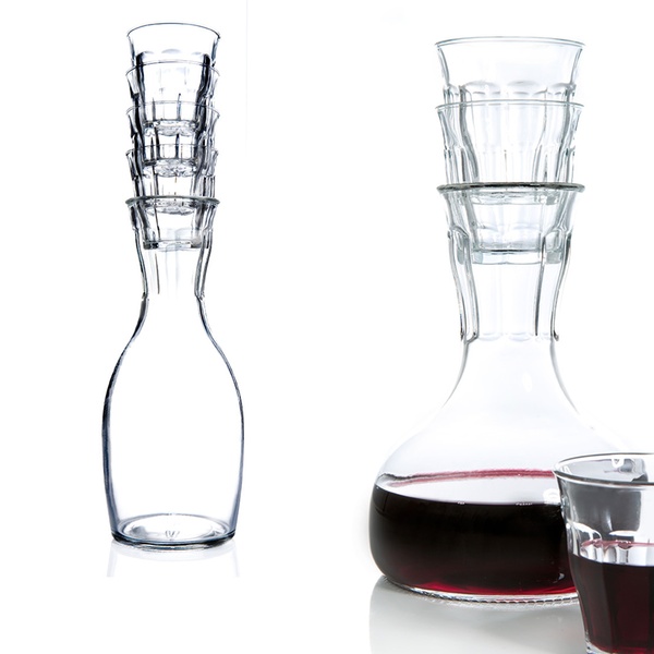 - Glasses can be stacked in the neck of the carafe