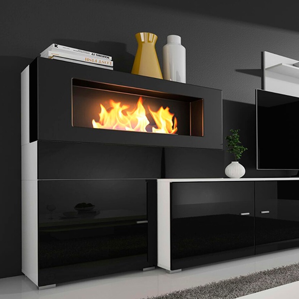 - Modern and stylish home entertainment storage system with built in bio-ethanol fireplace