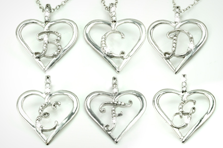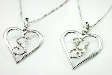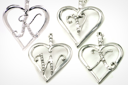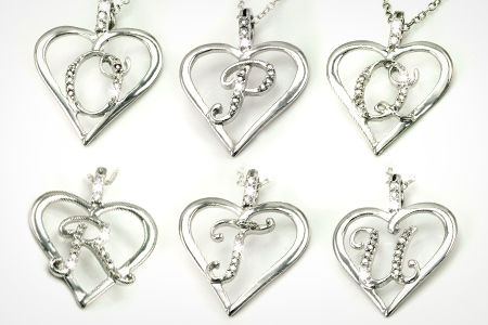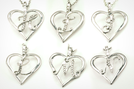 Inset with real diamonds, these necklaces feature a heart-shaped pendant with a chosen initial from A to Z in the centre. Plated with rhodium to give the appearance of white gold, the pendants hang lightly from a chain, adding a personal touch to necklines.
