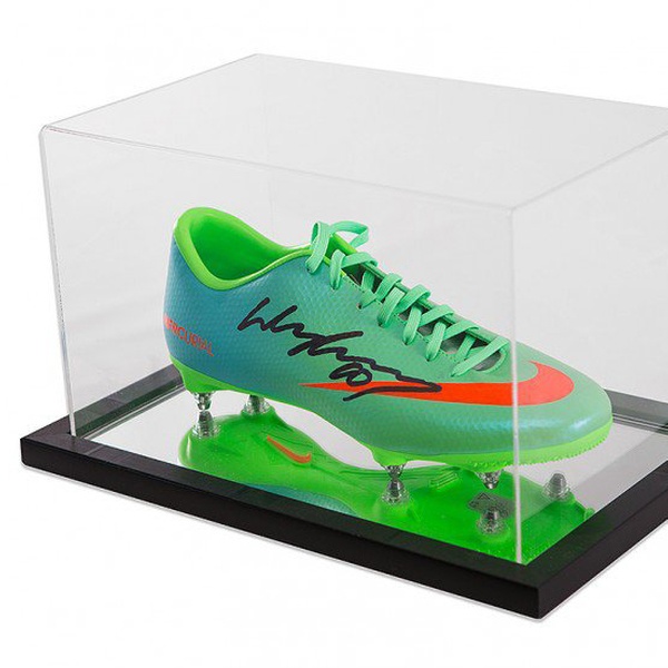 Own a piece of sporting history with this Nike Mercurial green football boot hand signed by Wayne Rooney. Presented in a clear acrylic display case with mirrored base that creates a stunning piece of signed sports memorabilia, this boot comes with a certificate of authenticity.