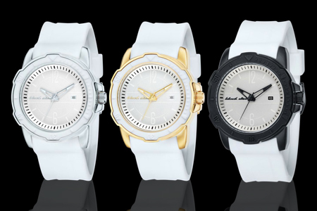 With Japanese 3-hand movement, these watches keep time in six stylish designs. The face, which comes in white or black is edged with a stainless steel in gold, silver, white or black, depending on the design chosen, and the strap is made of high grade silicon. Matching style with practicality, the watches are waterproof to 5ATM and can make a well-timed Christmas gift for brothers, fathers, husbands and boyfriends.