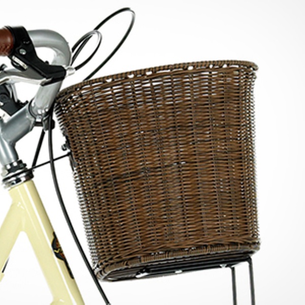 - Features: Brown comfort grips, trekking style pedals, rear carrier, full mudguards and brown front basket