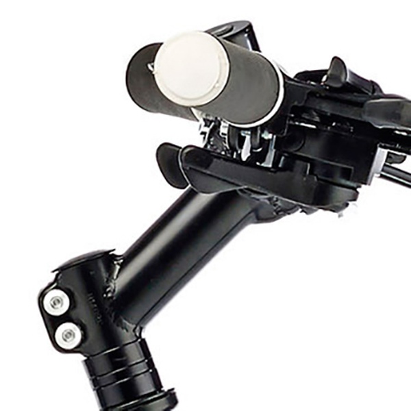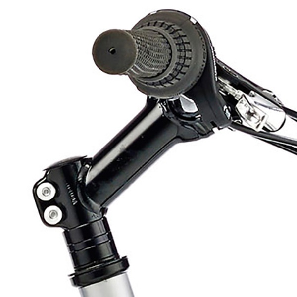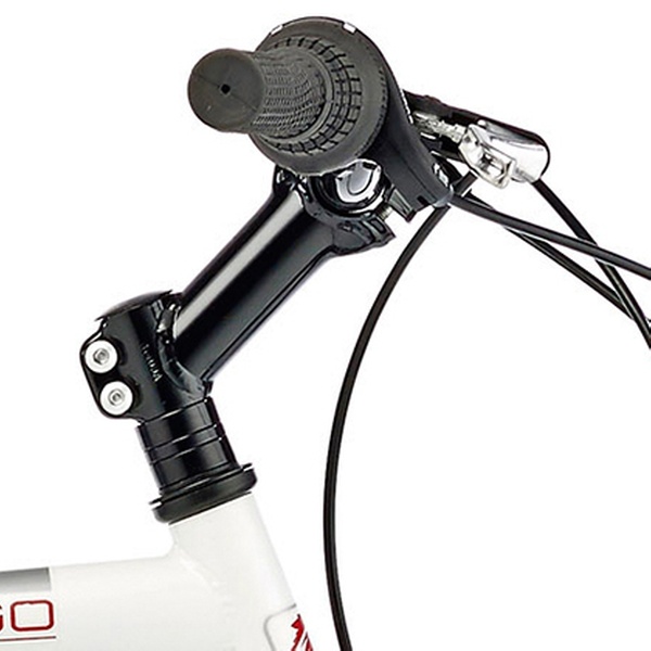- Steering: Lo-rise handlebars with an A-head stem and mountain bike grips
