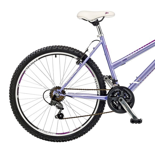- Frame: Hi-tensile ladies’ mountain bike frame