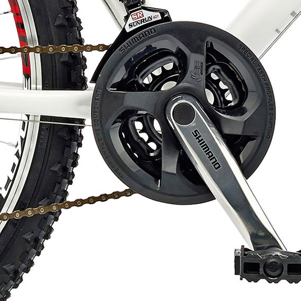 - Gear system: 21-speed indexed gears with Shimano EZ-Fire STI selection, Shimano rear derailleur, Shimano front mechanism, Shimano 7-speed 14-28T freewheel, Shimano FCM131 triple chainset with alloy 170mm crank arms, sealed cartridge bottom bracket set