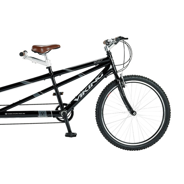 Get ready for leisurely biking along with your partner on these Viking tandem bikes featuring Shimano front and rear derailleurs. Designed with 21 or 24 speeds, depending on the model, these bikes are a great way of exercising together and having fun. The brown trekking saddles with alloy micro-adjust seat posts are ideal to keep you and your partner comfortable while biking.