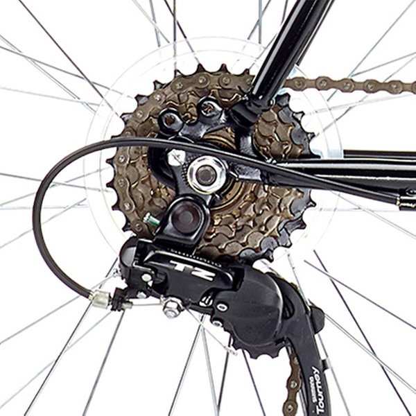 - Gears: 18 speed with twist shifters, shimano rear derailleur, and a 14-28 tooth freewheel
