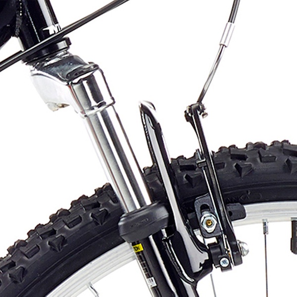 These mountain bikes feature 26 inch alloy wheels with 36 hole silver rims and ‘v’ style brakes with alloy 3-finger levers