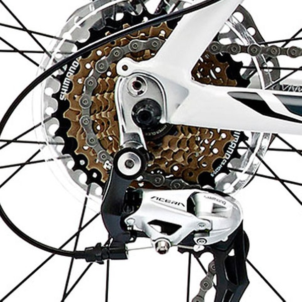 - Gears: Shimano Acera 27 speed, with Shimano Altus Rapid-Fire shifters, and a Shimano 9 speed cassette freewheel