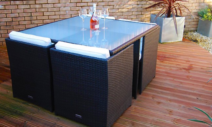 Today’s Groupon offers a Chelsea nine-piece rattan-effect cube set for £399.98: