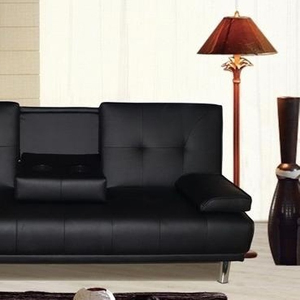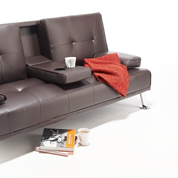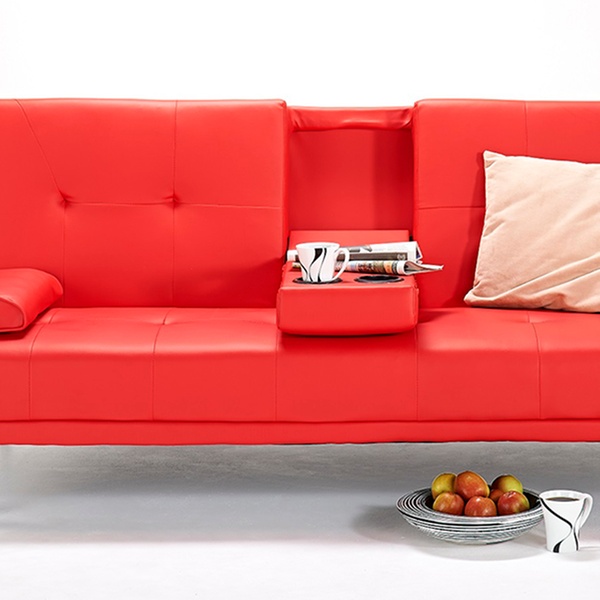 - Cinema sofa bed comes with two cup holders and sleeps one adult or two children