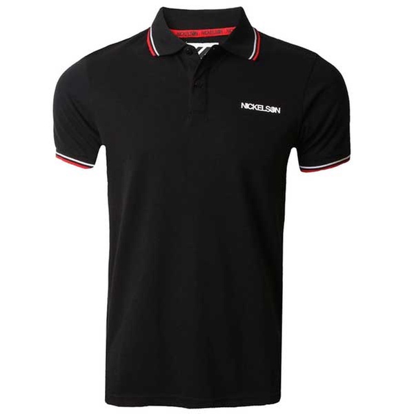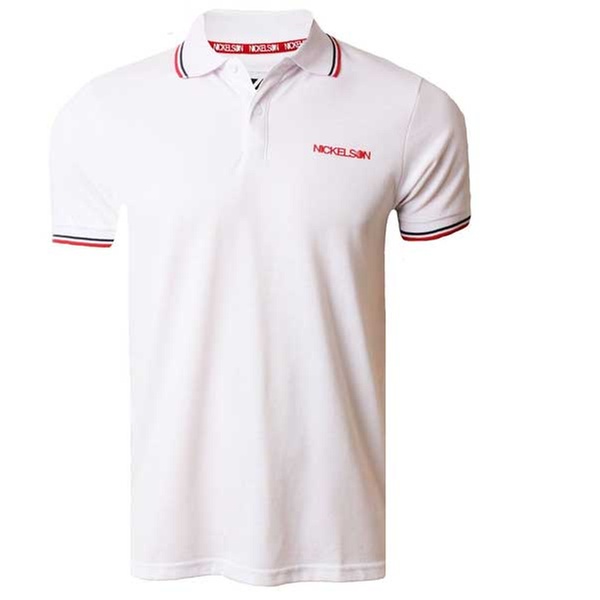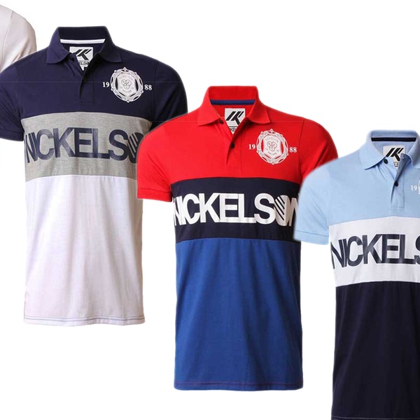 Available in various classic designs, these polo shirts feature two-button placket and Nickelson logo on chest