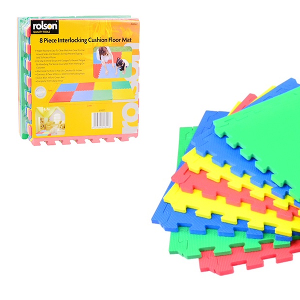 Create a quirky design with these coloured floor mats that feature puzzle style edges to quickly fit into place