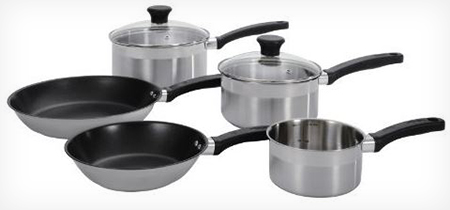 - £44.99 for Tefal Banquet five-piece stainless steel saucepan set (63% off)