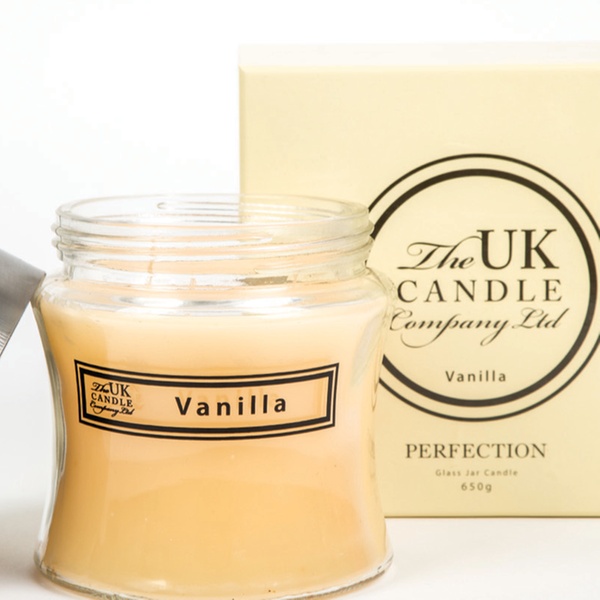 Choose from the following options for The UK Candle Company large glass jar scented candle with lid plus matching gift box: