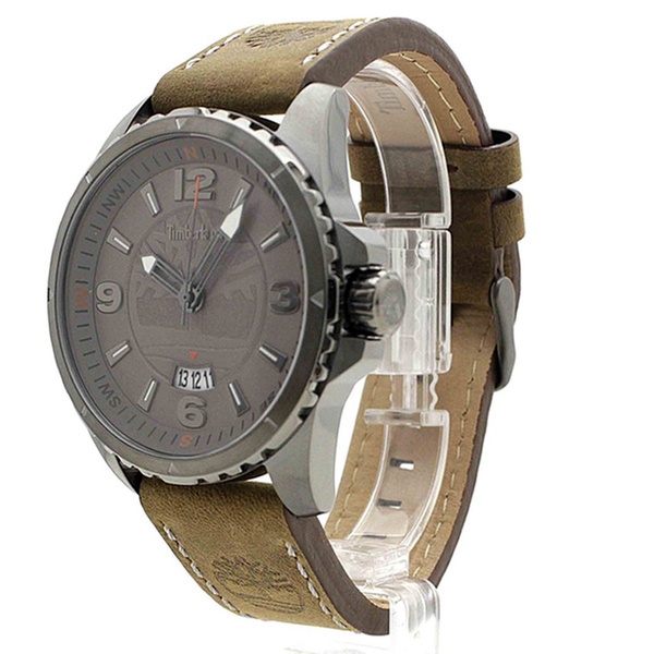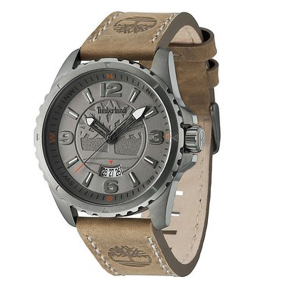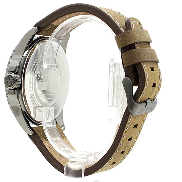Keep track of time with this Timberland watch that features a hypoallergenic stainless steel case and leather strap with buckle fastening
