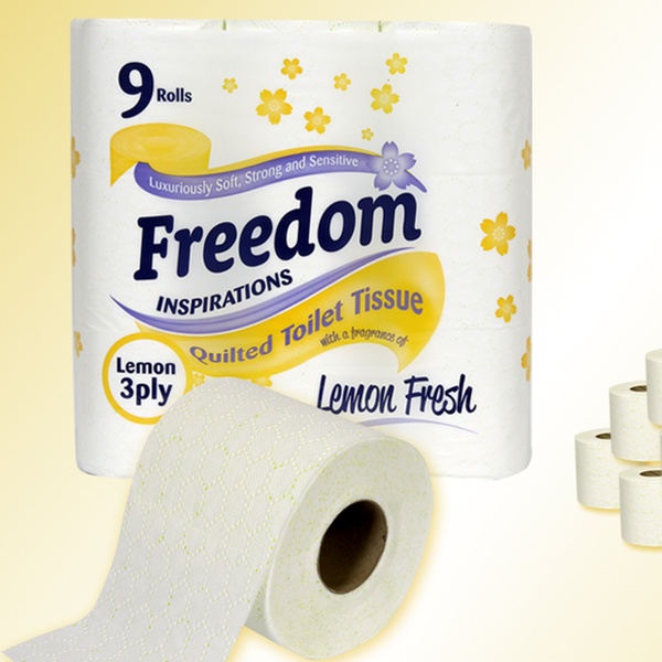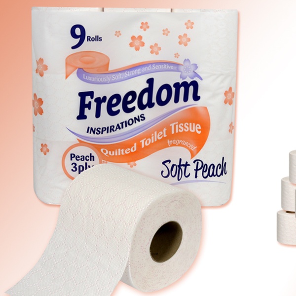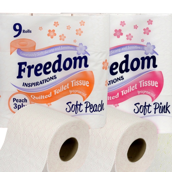 Choose from the following options for 45-roll pack freedom pink, peach, lemon coloured and fragranced toilet paper:
