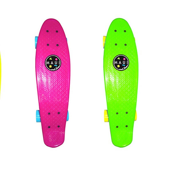 The Maui and Sons Cookie Boards are designed with PVC wheels. This cruiser skateboard comes in a bright and trendy neon styling. Featuring a polyethylene cushion, these skate boards aim to help practice tricks and stunts in the skate park.