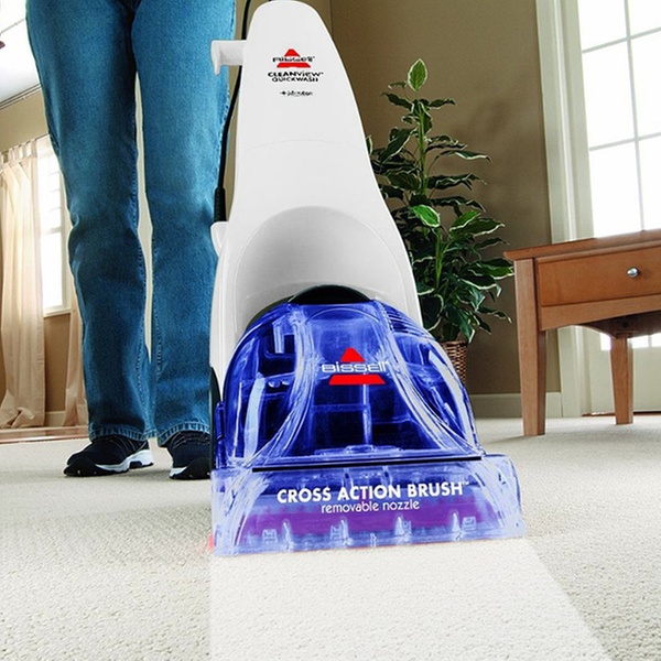 Weighing in at 6kg, this easy-to-use Bissell compact carpet cleaner has two rows of rotating power brushes to whip dirt out of carpets. The device features an easy-to-fill clean water tank and an easy-to-empty dirty water tank for necessary refills and changes. There is also the option to include a 1.5-litre bottle of Bissell's 'Wash and Protect' carpet shampoo containing Scotchgard. The formula is designed to protect carpets from future stains and soiling, and leaves a lavender fragrance behind for a fresh and revilatlised smell.
