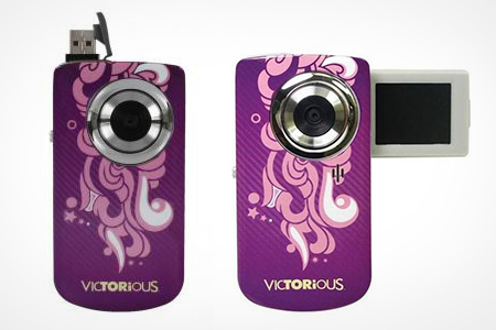 SpongeBob or Victorious fans can use these specially themed digital camcorders to take videos and snapshots on the go. Each camera is equipped with snap shot CD-ROM software and a USB connector to transfer movies and photos onto a computer.