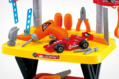 Perfect for little mechanics, this workshop playset features shelves and compartments brimming with tools and accessories to provide hours of play. Kids can 'build their own car' using over 50 components and mechanic tools including a saw, wrench, screwdriver and hammer, as well as a battery powered drill. The innovative toy is designed to improve hand/eye co-ordination and motor skills as well as develop imaginative role play.