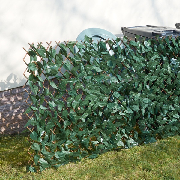 Featuring artificial leaves made of plastic, this hedge trellis is ideal to add a little more privacy in your garden