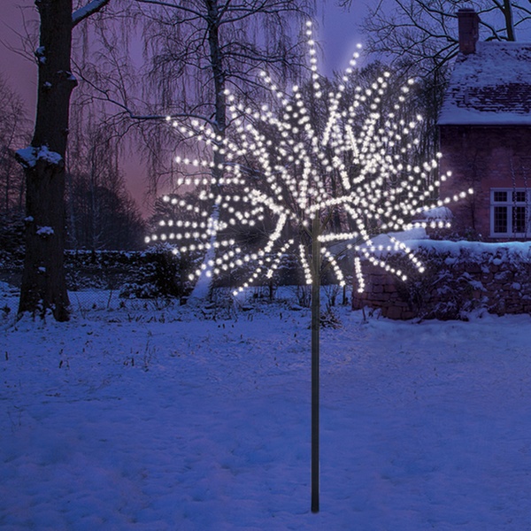 These illuminated white LED blossom trees will add a festive cheer to patios, gardens, or indoors, in four different sizes to choose from