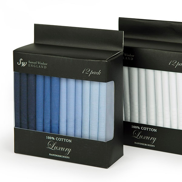 Choose from the following options for pack of 12 luxury Samuel Windsor handkerchiefs: