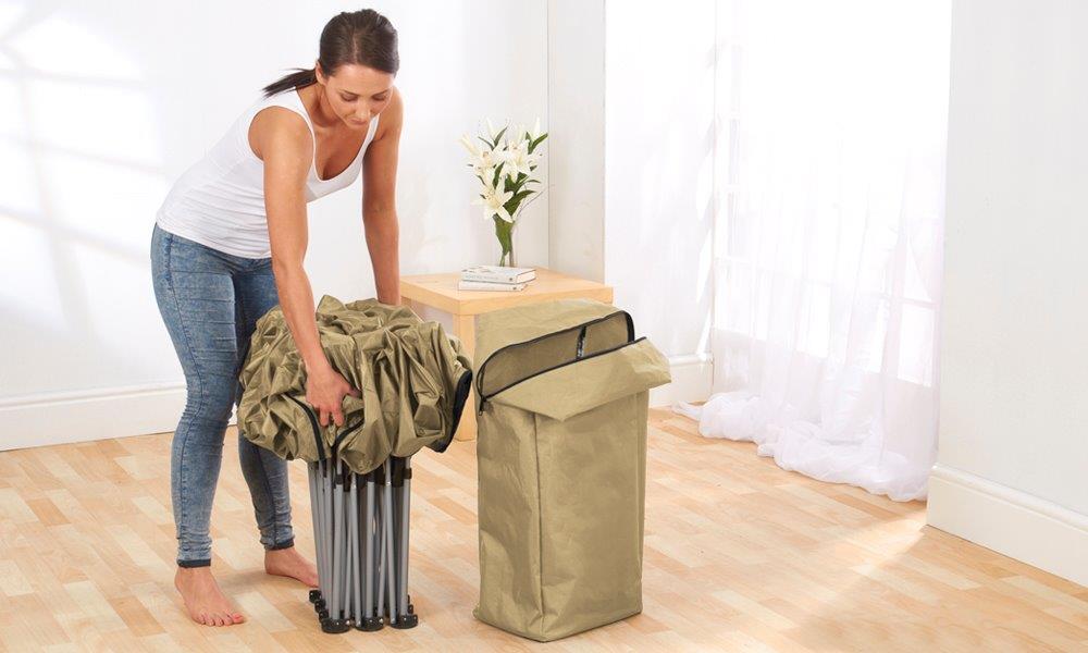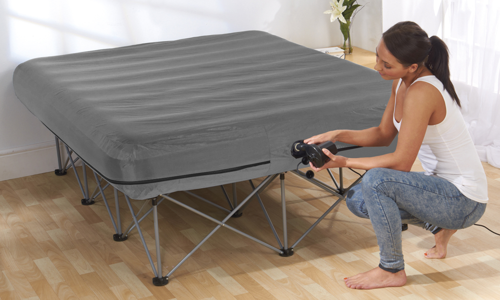 This double mattress is ideal for guests and camping trips, with its easy-to-assemble steel frame that takes up little room in the bedroom cupboard. A pump and carry bag ensures that the polyester mattress can be inflated and stored away, or transported to holiday destinations.
