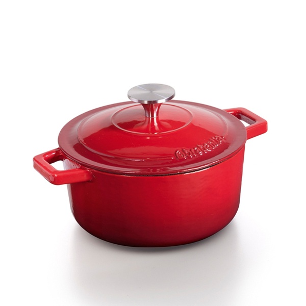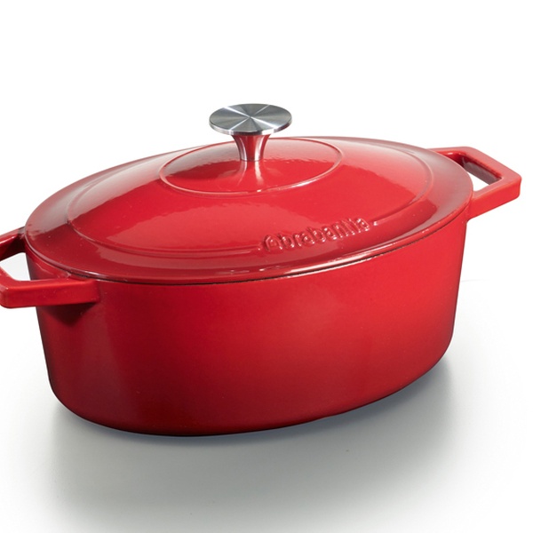 These Brabantia casserole dishes are made of ceramic cast iron with stainless steel handles and are designed to be dishwasher and oven safe