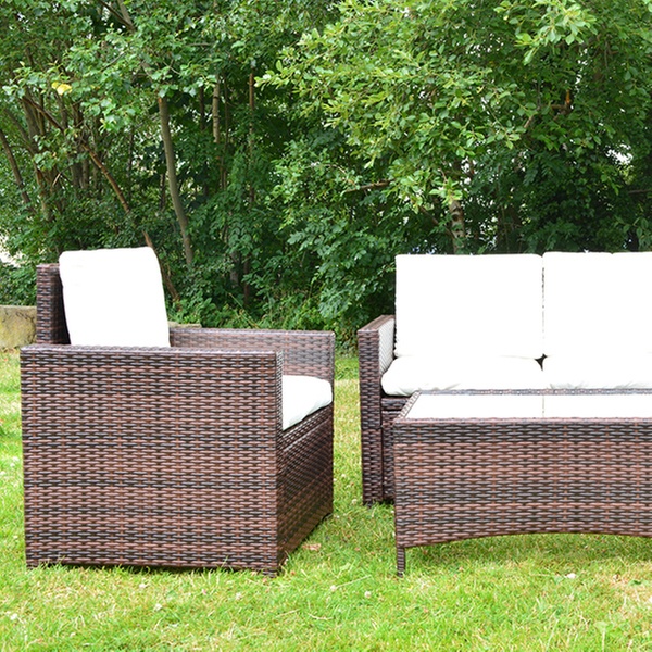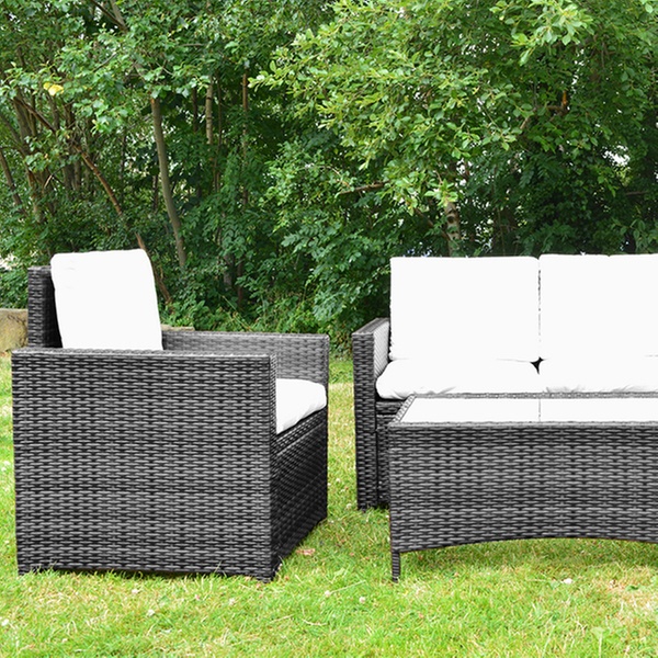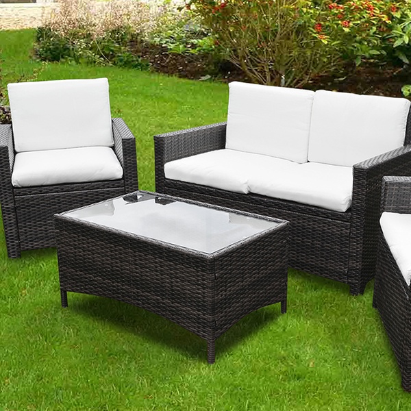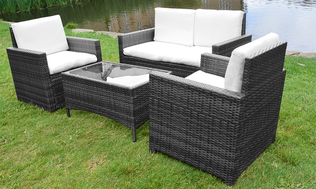 Today’s Groupon offers a four-piece rattan-effect cube style furniture set in black or brown for £229.99.