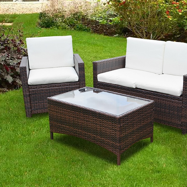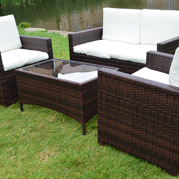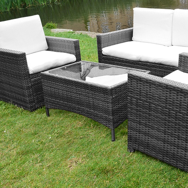 The rattan-effect makes the set hard-wearing and durable, and the stylish glass table top is ideal for entertaining guests