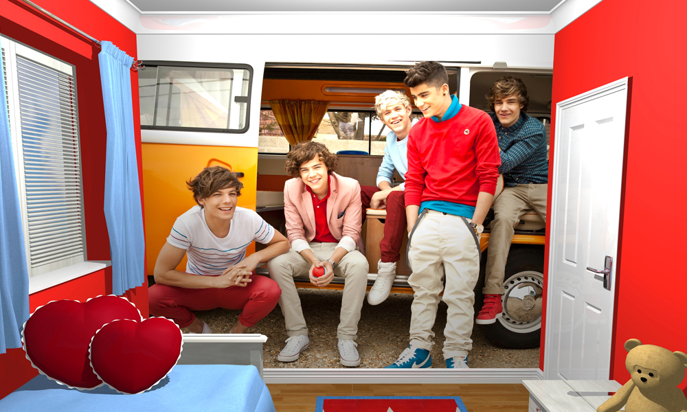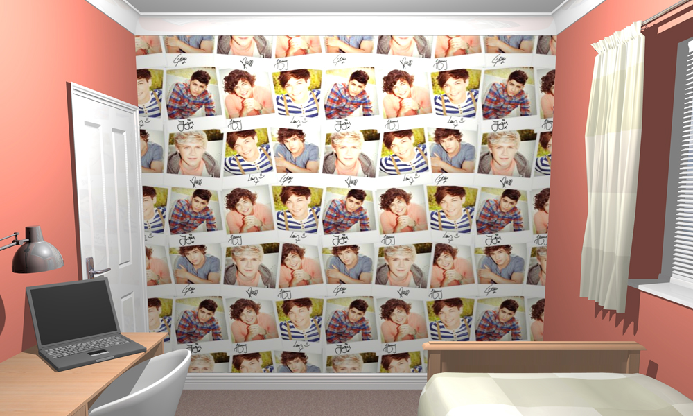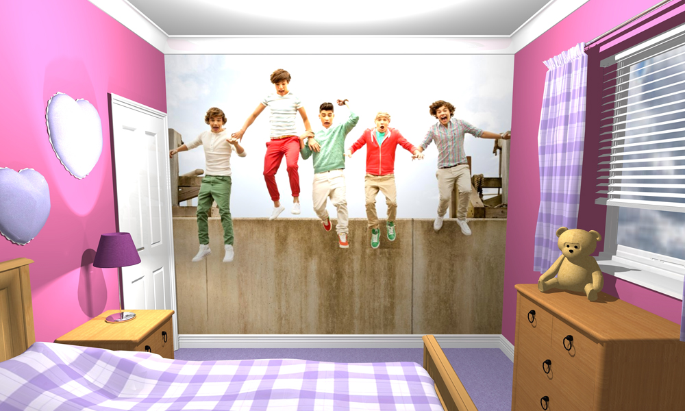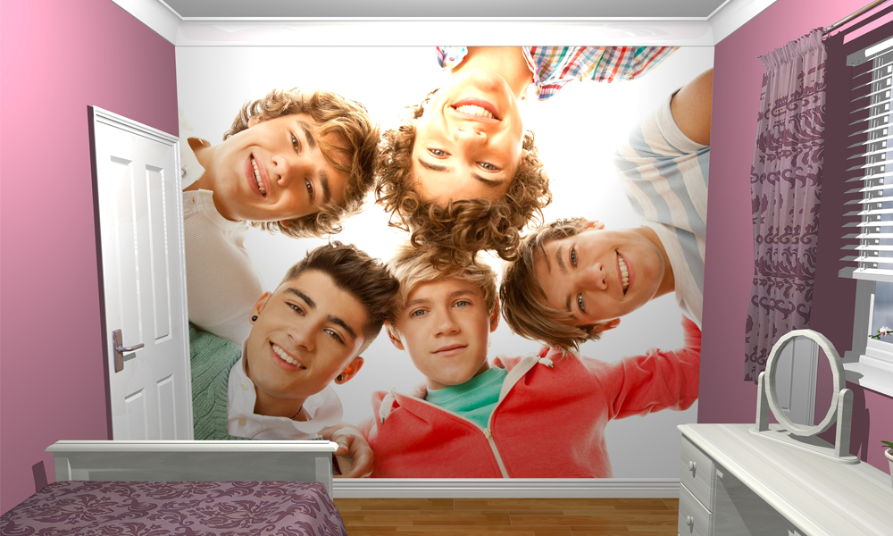Harry, Zayn, Louis, Niall and Liam can become the focal point of any room with a 1D wall mural in a choice of four different designs. Each image comes in six pieces, and hangs in the same manner as regular wallpaper ready to delight scores of eager fans.