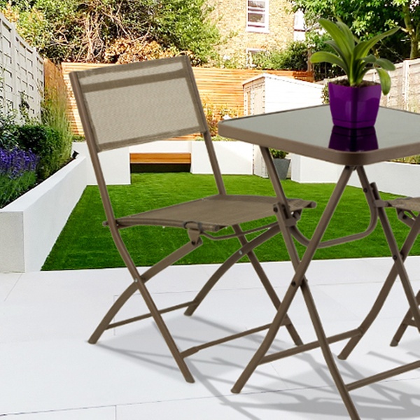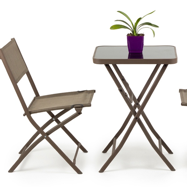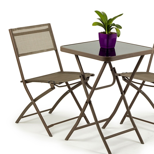 Foldable table with tempered glass and coated steel chairs, great for enjoying a cup coffee or tea on patios, terraces and in livings