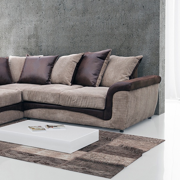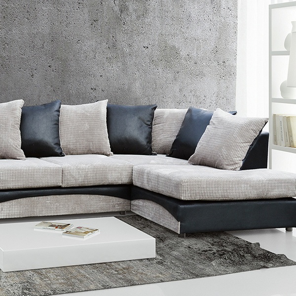 Designed to be durable, the sofa features a sturdy wooden frame with cord & faux leather finish and plush fibre cushions for extra comfort