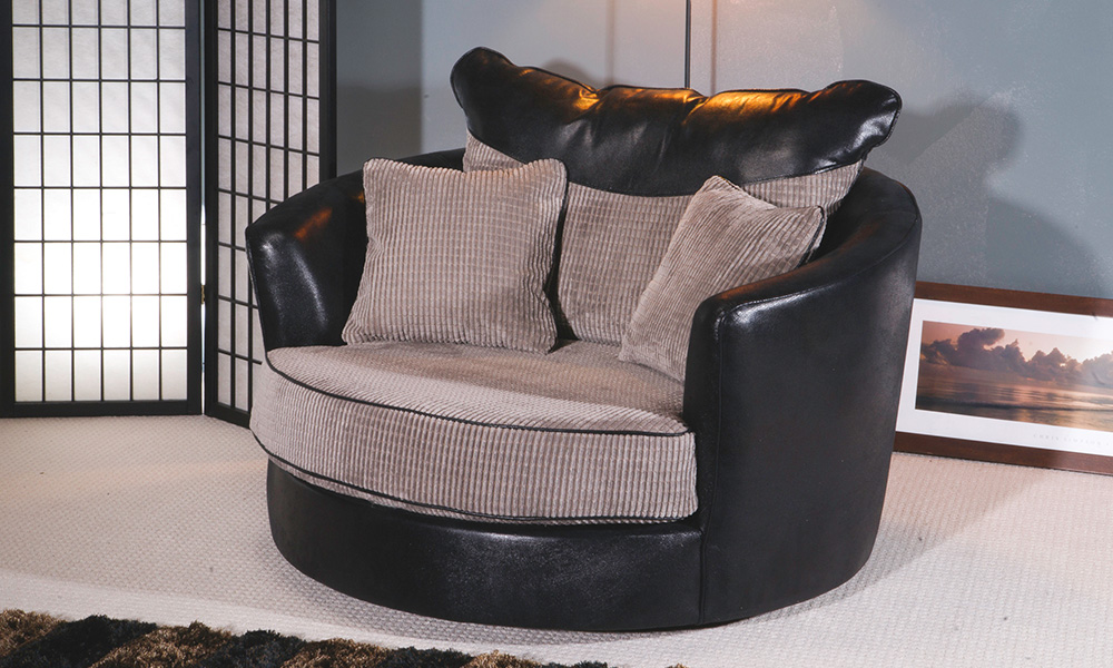 £299 for a swivel cuddle chair in brown/coffee or black/grey (57% off)