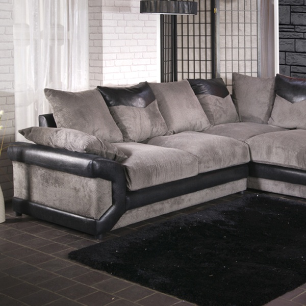 Supported by a seasoned timber frame, these corner sofas are designed with foam and fibre-filled corded fabric and leather effect panels