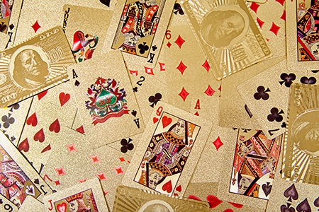 This full deck of cards features the timeless allure of 24-carat gold. Each flexible plastic card has been plated with 24K gold foil and features a $100 bill design on the reverse. The cards are presented in a gold sleeve box and come with a purity certificate of authenticity for a high stake game of snap.