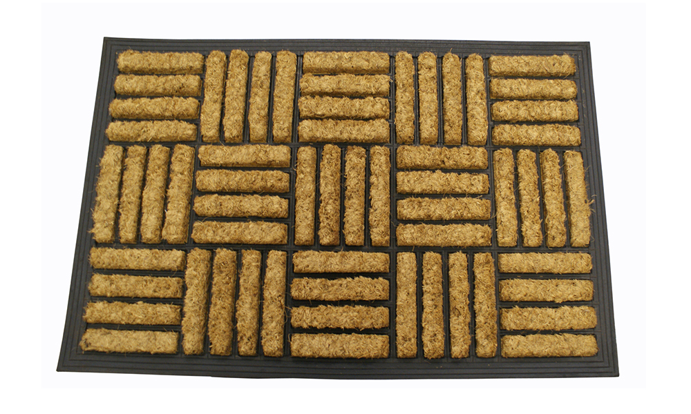 Hard wearing doormats trap moisture and dirt on the floors of kitchens or out on patios with PVC rubber backings in a choice of design